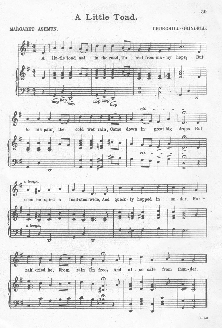 Margaret’s toad poem set to music in the Churchill-Grindell Song Book No. III from 1910.